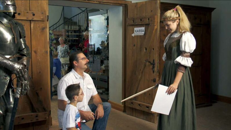 Die Aussicht auf eine Belohnung beim Lösen eines Rätsels ist für Kinder eine starke Motivation. Die Gestaltungsmöglichkeiten für solche Abenteuerspiele sind vielfältig und werden individuell auf die örtlichen Begebenheiten und die Wünsche der Kunden angepasst. Der Weg zum Festung am Schlosskopf in Ehrenberg ist gesäumt mit Stationen, mit deren Hilfe die Kinder den Weg zum sagenhaften Schlosskopf-Schatz finden.
