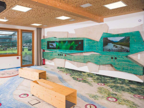 Das touristische Brandland im Lechtal besteht aus einem einzigen Raum mit Doppelfunktion: Naturparkausstellung und Seminarraum. Unter Berücksichtigung der Vorgaben entwickelte entertaining.at eine Ausstellung bestehend aus multifunktionaler Medienwand, interaktivem Teppichboden und einem Quiz, das den Besuchern den Lebensraum Lech näher bringt.