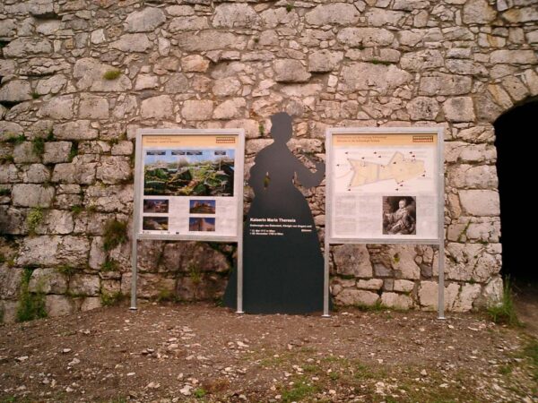 Die Exponate und Schautafeln am Schlosskopf in Reutte entführen die Besucher in die Welt der Festungsbaumeister und Soldaten des Barockzeitalters. Die Besucher können Steinmetzwerkzeuge ausprobieren und so selbst erfahren, mit wie viel Zeit und Mühe der Bau einer solchen Festung wie am Schlosskopf verbunden war.